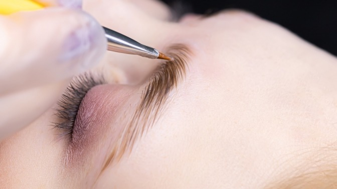 Для окрашивания ресниц на нижнее веко накладывают специальный защищающий стикер, который уберегает кожу от попадания краски. Глаза во время процедуры должны быть закрыты. На ресницы наносится красящий состав и выдерживается нужное время. Брови окрашиваются краской без специальной подготовки. После смывания краски брови и ресницы обрабатываются бальзамами и кремами, как при окрашивании волос.