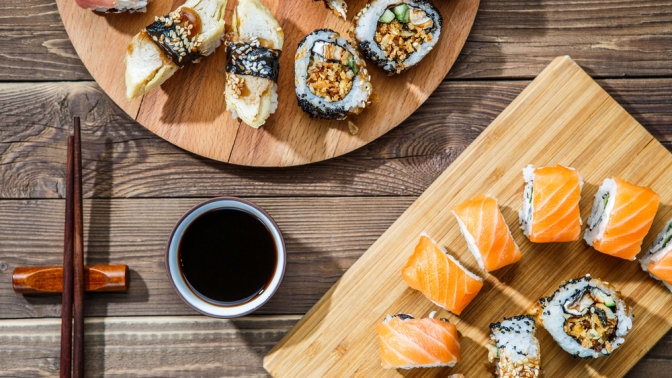 Суши и роллы — это блюда японской кухни, которые традиционно готовятся из ароматного японского риса и свежей рыбы, однако туда добавляют и другие компоненты на усмотрение шефа. Для роллов чаще используют сушеные морские водоросли — нори, а также кладут внутрь всевозможные виды морепродуктов, курицу, мясо, икру, овощи, сливочный сыр, кунжут и другие продукты. В этом многообразии для каждого найдется подходящий вариант!